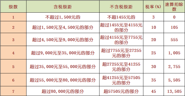 附:含税级距适用于由纳税人负担税款的工资、薪金所得;不含税级距适用于由他人(单位)代付税款的工资、薪金所得。